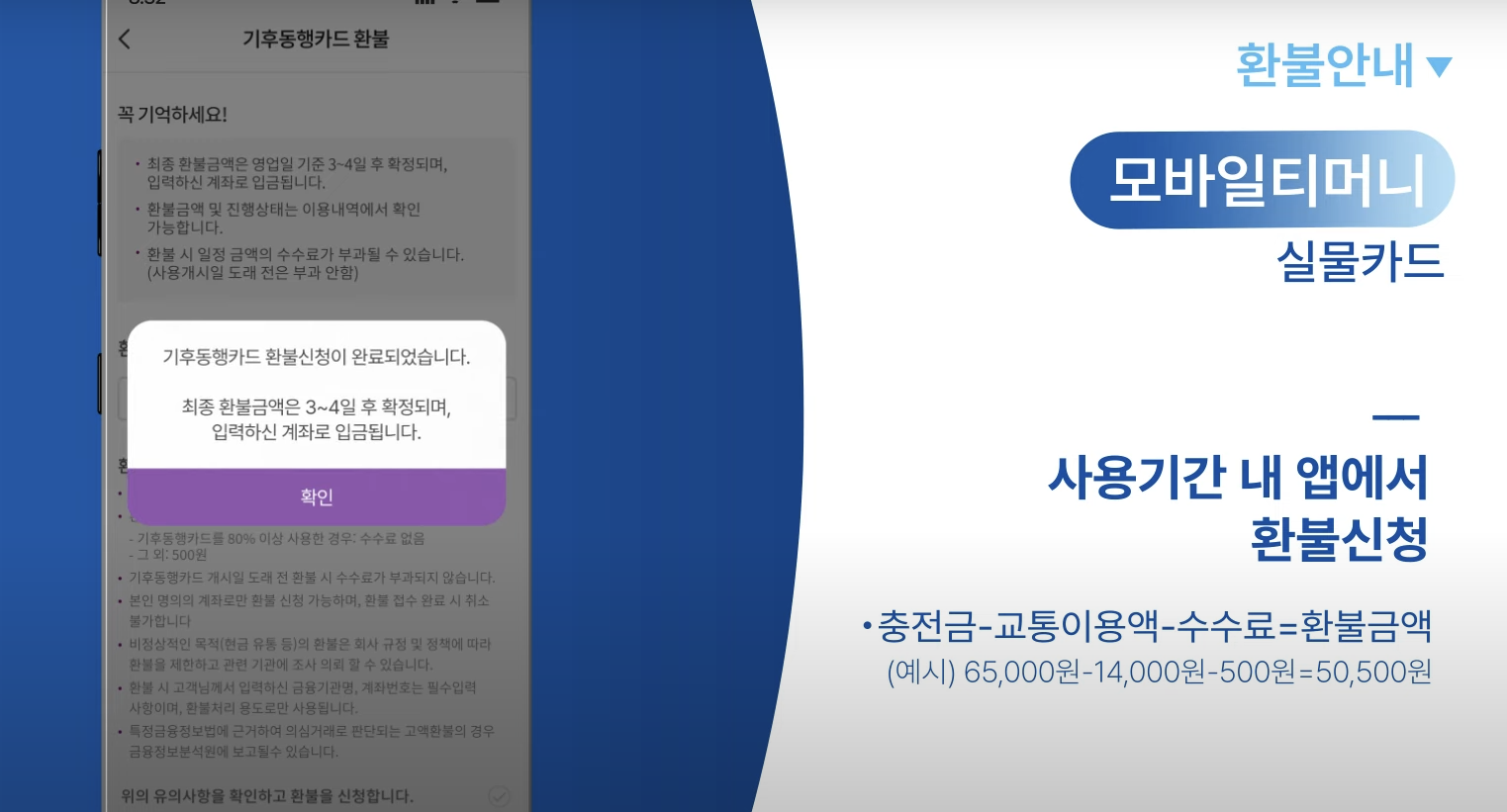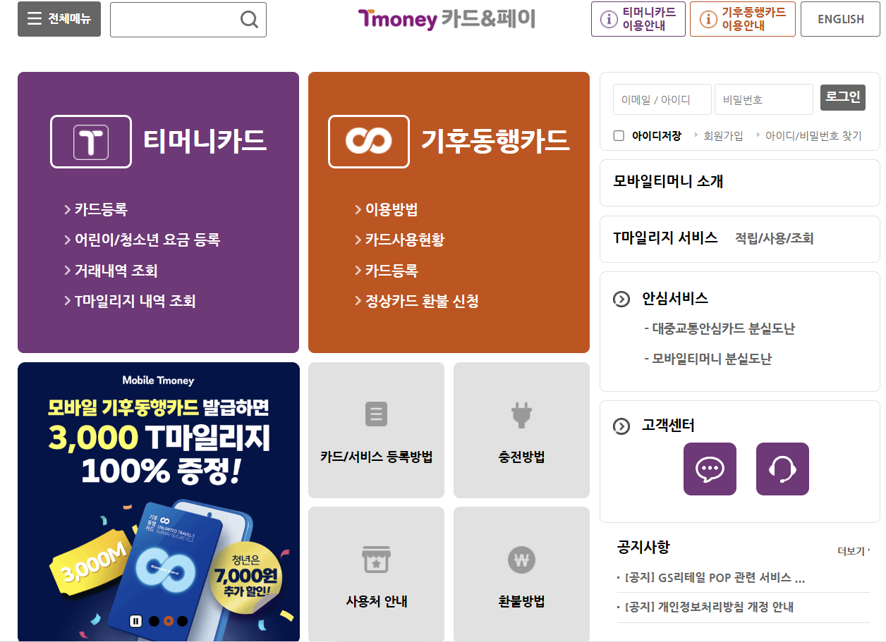 환불을 받기위해서는 티머니 카드&페이 홈페이지 가입 후 카드번호를 등록하셔야 합니다.