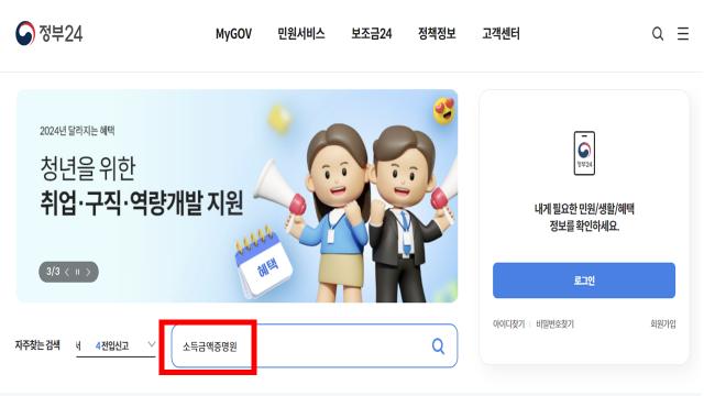 1) 정부24 홈페이지 검색창에 '소득금액증명원' 검색하기