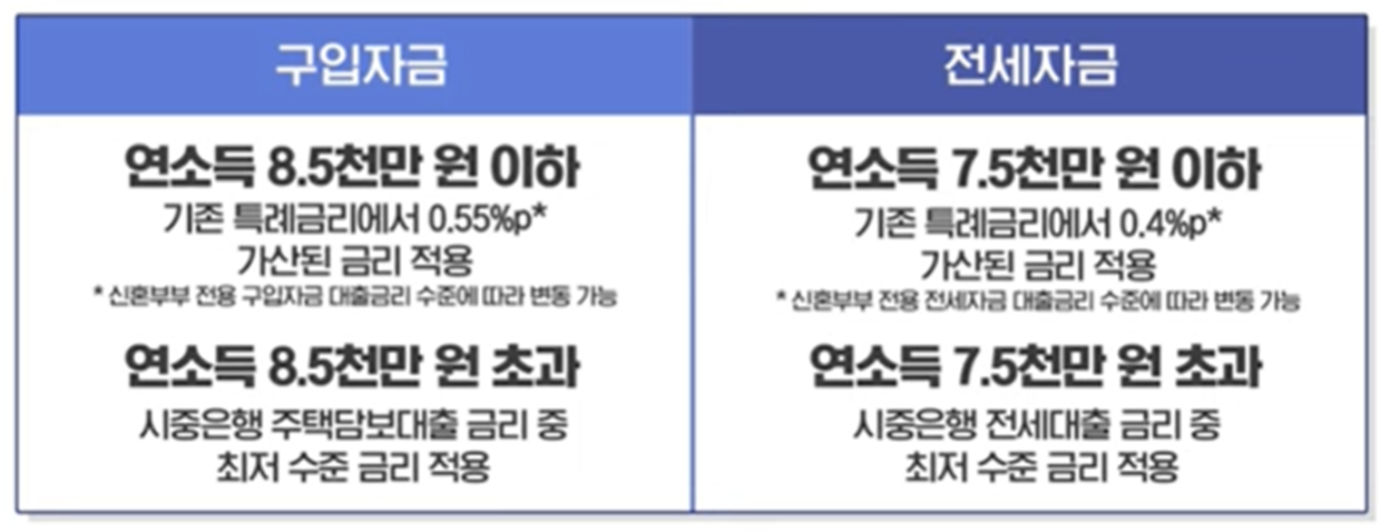 구입자금 : 연소득 8,500만원 기준 이상/이하로 금리적용