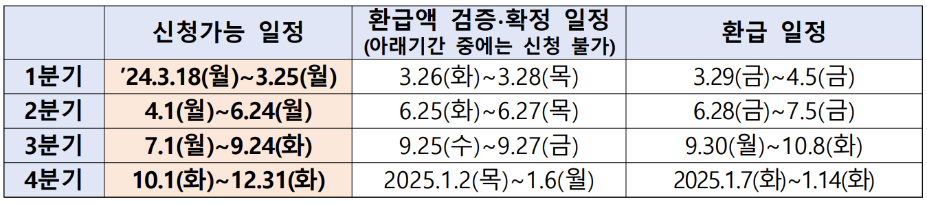 이자를 1년치 이상 납입했는지를 확인한 후, 1년치 이자가 모두 납입된 후 처음 도래하는 분기의 말일 (영업일 기준, 1분기의 경우 3.29일)부터 6영업일 이내 환급금액을 “차주 명의의 원리금 자동이체 계좌*”에 입금하고, 그 사실을 문자로 알립니다.