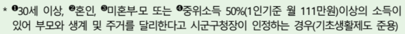 다만, 30세 이상이거나 혼인으로 부모와 주거를 달리하는 것으로 보이는 청년은 청년 본인가구의 소득/재산만 확인한다.