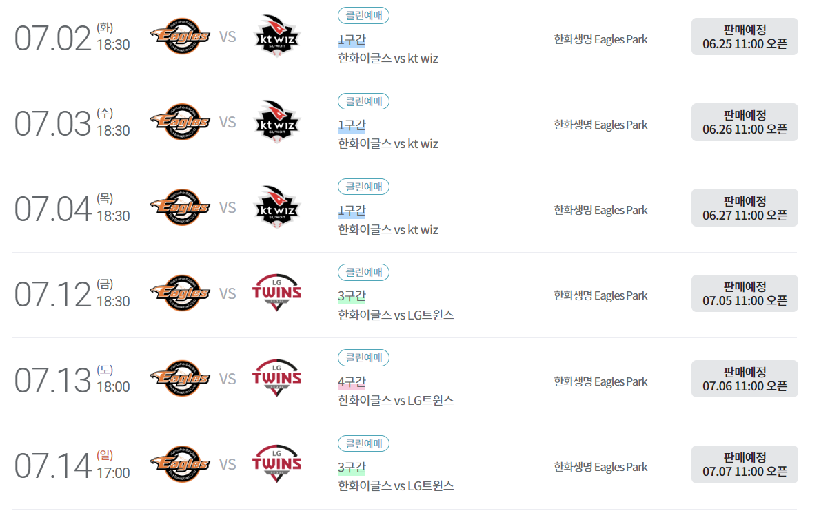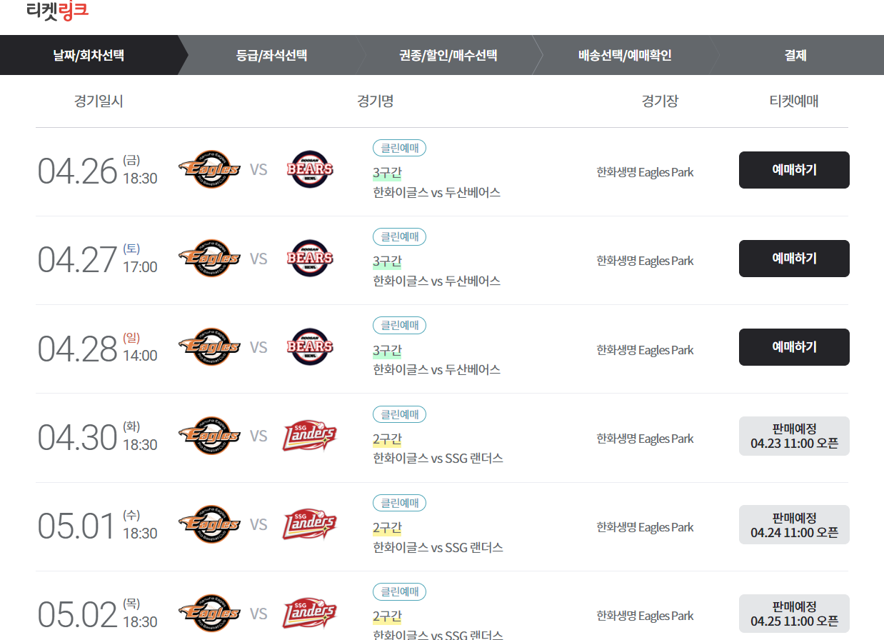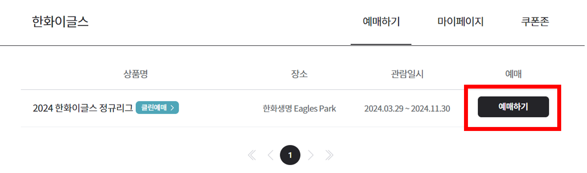 ✅ 한화이글스 홈페이지 회원가입 후 '예매하기' 버튼클릭